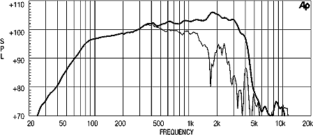 | Frequency response in 125 Liter enclosure tuned to 50Hz | |