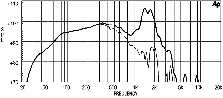 | Frequency response in 180 Liter enclosure tuned to 35Hz | |