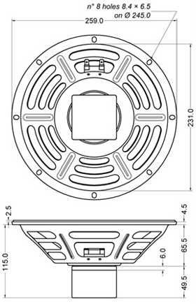 | Front Mount Baffle Cutout | 9.1" / 231mm |